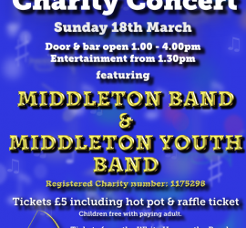 Join us for an early evening ‘at the movies’ concert where we will be providing an evenings entertainment with a flavour of the movies. Entertainment will be provided during the evening by both the senior Middleton band under Musical director Kevin Gibbs and Middleton Youth Band under musical director Louise Crane. As […]