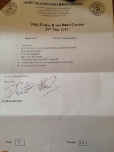 The band once again took part in the annual Whit Friday band contests. The weather was cold damp and windy but this did not spoil a fantastic and successful evening!