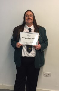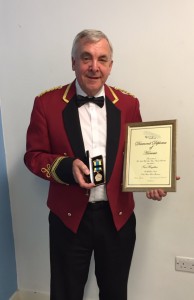 Shirley Woodward from the North West Area Bras Band Association payed a surprise visit to award several members with long service awards. Soprano cornet Louise Crane, Percussionist Bill Hutchinson and Musical Director Martyn Evans received their long service awards for 25 + years service. Tenor horn player and band chairman Fred Houghton received his 60 years service award and medal.