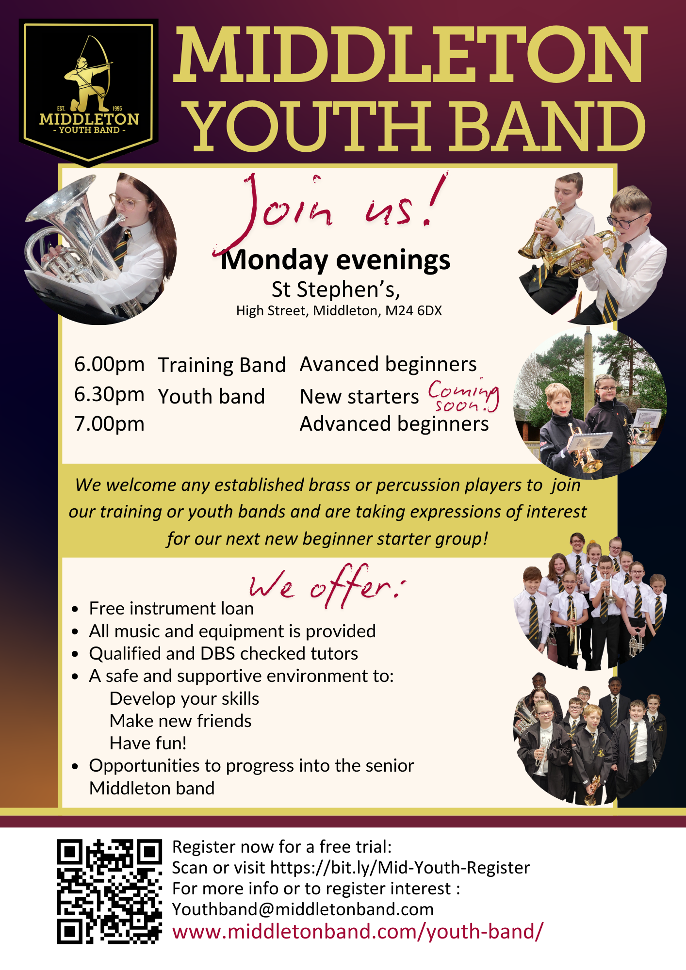 Lapsed players of any age looking to take up brass again are also very welcome.